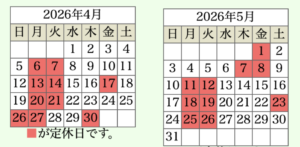 基本的に月火定休ですが、GW中は続けて営業し平日にお休みを頂戴いたします。